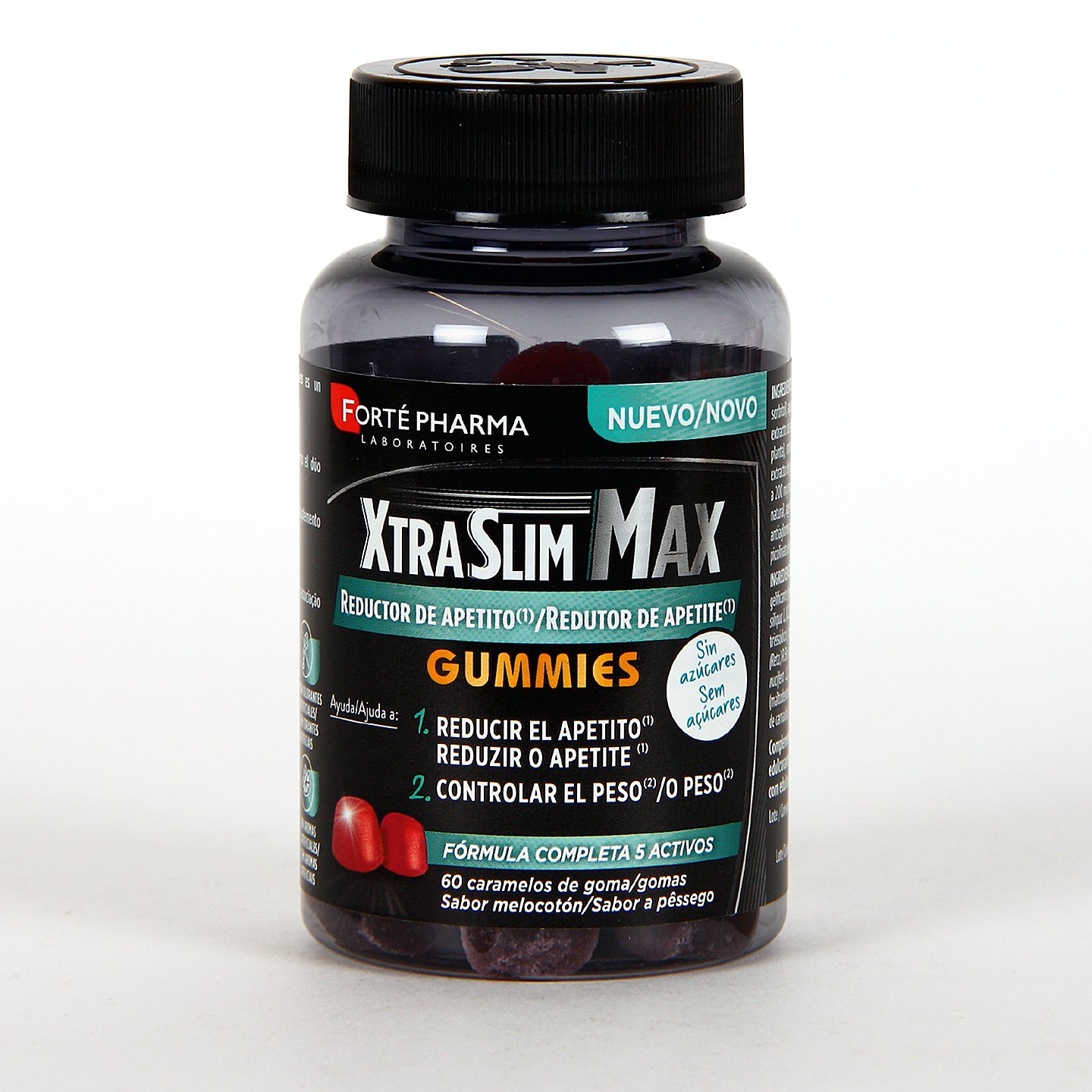 Xtraslim Max Reductor de Apetito 60 Gummies Melocotón está formulado con ingredientes de origen natural como algarroba, gymnema sylvestre, vitaminas B5 y B6, cromo y zinc, diseñado para ayudar a controlar el apetito dentro de programas de control de peso. Se presenta en formato gominola con sabor melocotón, lo que facilita su consumo diario sin necesidad de agua. Su fórmula está pensada para ayudar a reducir la sensación de hambre, limitar los antojos y apoyar el equilibrio del metabolismo de la glucosa.
