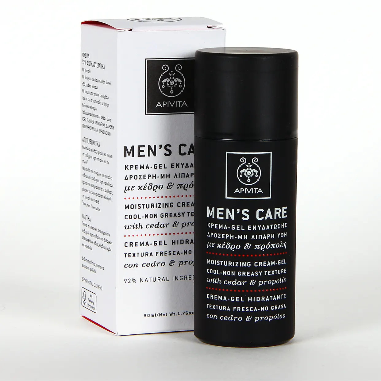 Apivita Mens Care Crema-gel hidratante. Muy buena alternativa para hombres que prefieren texturas ultrafrescas y naturales. Ideal para piel mixta o deshidratada.