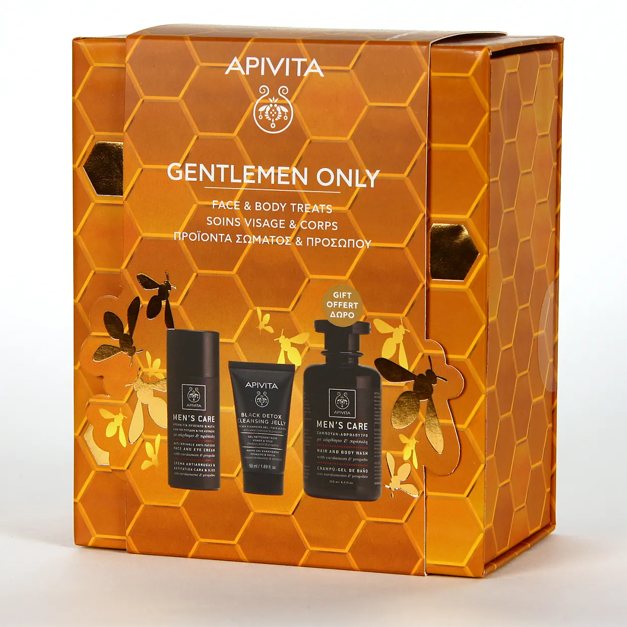 El Apivita Pack Cuidado para Hombres es un set completo de cuidado masculino que simplifica la rutina diaria con productos eficaces y naturales. Incluye un gel limpiador Black Detox que purifica y elimina impurezas sin resecar, un gel corporal y champú que regula la grasa en piel y cabello, y una crema antiarrugas con contorno de ojos que hidrata intensamente mientras trata arrugas, líneas de expresión, ojeras y signos de fatiga.